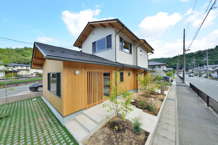 外壁 : 智頭杉、 ジョリパット吹付ゆず肌